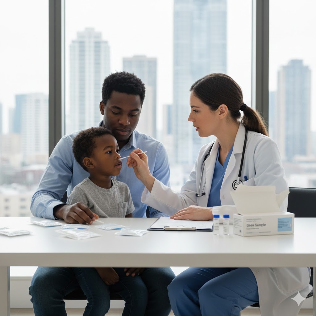 Paternity, maternity, and immigration DNA tests. Performed using cheek swabs with legal admissibility and accuracy guaranteed by accredited labs.